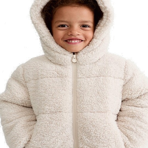 F&F Girls Borg Textured Padded Hooded Jacket in Cream