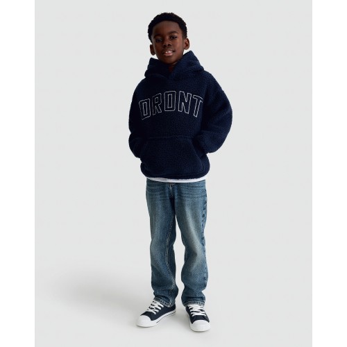 F&F Boys Borg Textured Slogan Hoodie in Navy