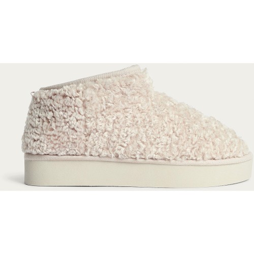 Borg Textured Platform Slippers in Cream