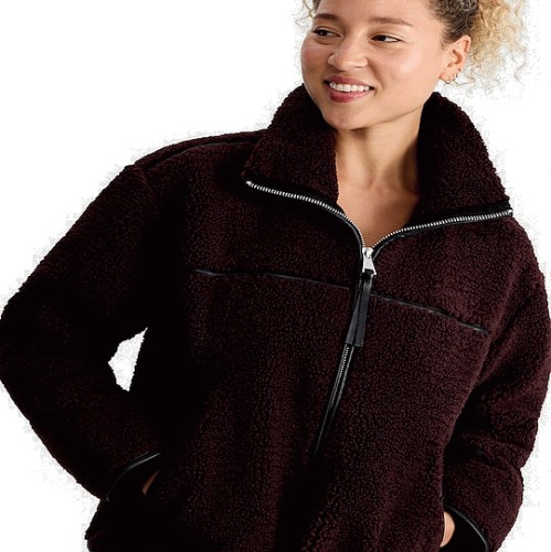 Active Borg Funnel Neck Zip Through Jacket in Purple