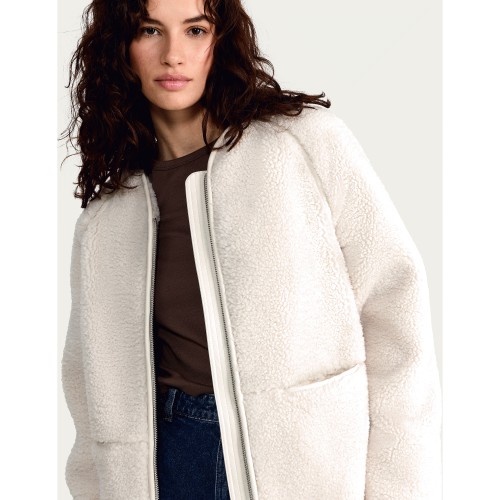 Borg Zip Up Collarless Jacket in Cream