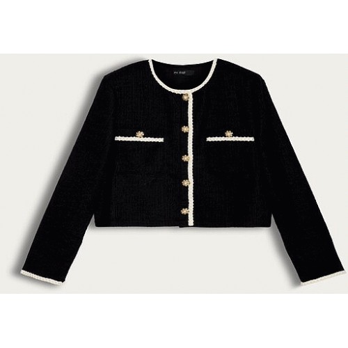 Boucle Button Pocket Front Co-ord Jacket in Black