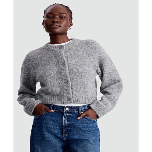 The F&F Edit Textured Button Up Cardigan with Wool in Brown