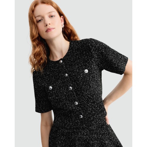 Boucle Textured Short Sleeved Jacket in Multi Black White