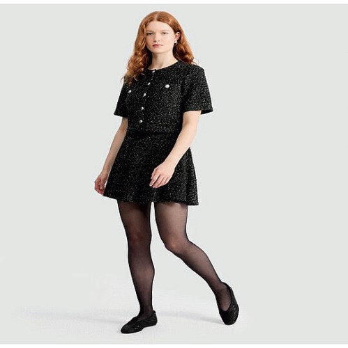 Boucle Textured Sequin Embellished Mini Skirt in Black