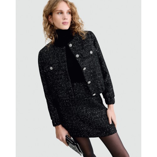 Boucle Sequin Embellished Button Front Co-ord Jacket in Black