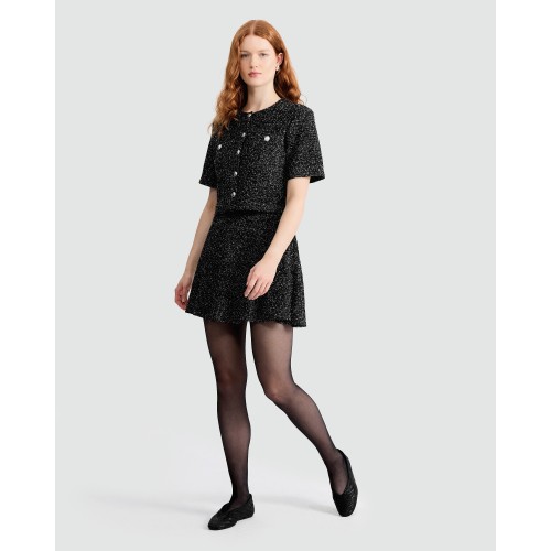 Boucle Textured A Line Co-ord Skirt in Multi Black White