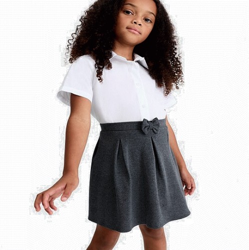 F&F School Girls Cotton Rich Bow Detail Pleated Skirt in Grey