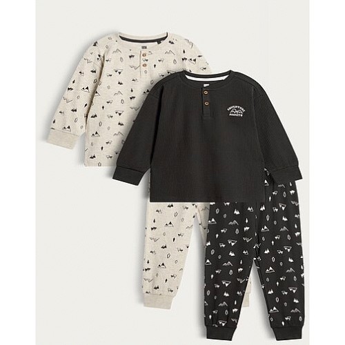 Boys 2-Pack Cotton Rich Adventure Awaits Pyjamas Set in Beige