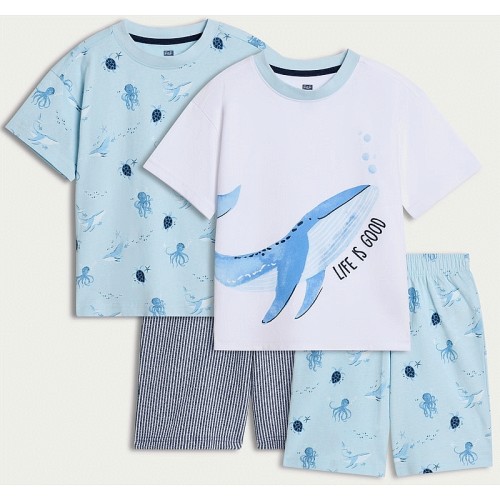 2-Pack Pure Cotton Whale Print Pyjama Sets in Blue
