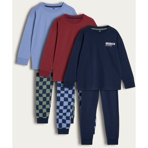 Boys 3-Pack Pure Cotton Pyjama Set in Blue Multi