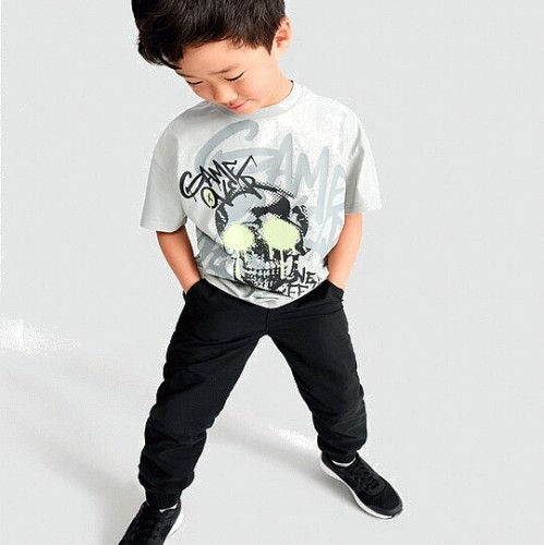 F&F Boys Pure Cotton Game Over Skull Print T-Shirt in Grey