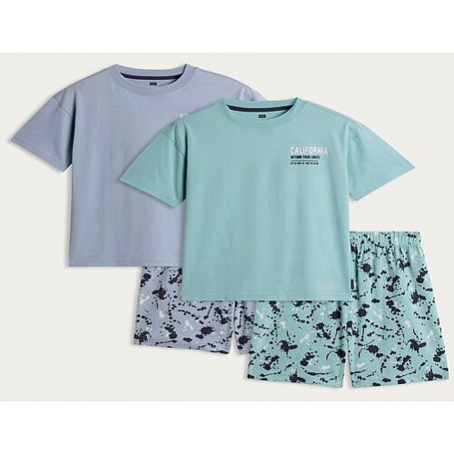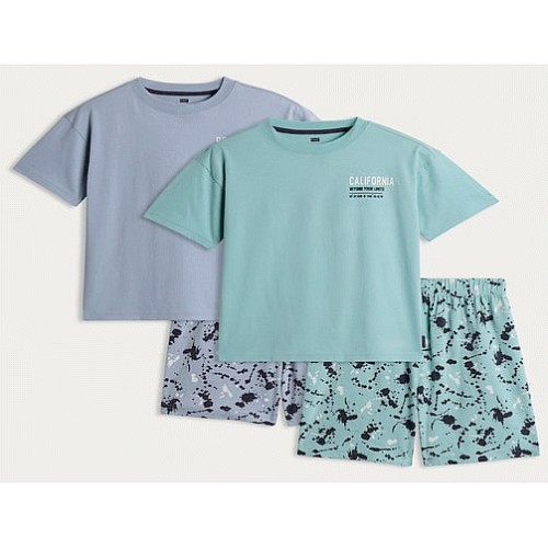 Boys 2-Pack Pure Cotton Printed Pyjama Sets in Blue