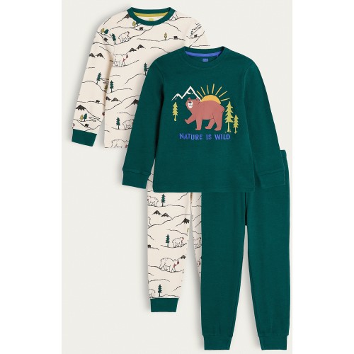 Boys 2-Pack Pure Cotton Nature Is Wild Pyjamas in Green Multi