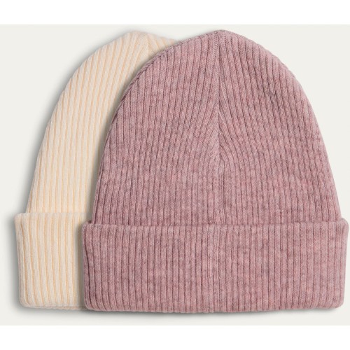 Girls 2-Pack Ribbed Beanie Hats in Neutral
