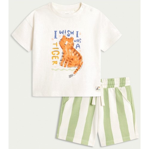 2-Piece Tiger Print T-Shirt and Striped Shorts Set in Cream