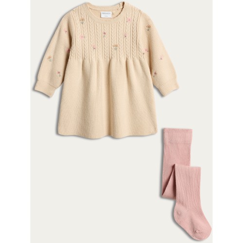 2-Piece Cable Knit Dress and Tights Set in Cream