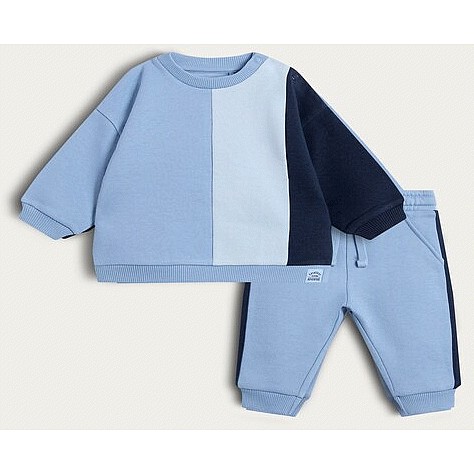 Cotton Rich Colour Block Sweatshirt and Joggers Set in Blue