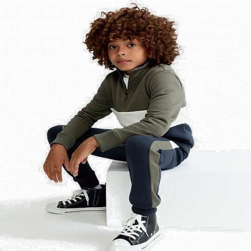 F&F Boys 2-Piece Cotton Rich Half Zip Colour Block Sweatshirt and Joggers Set in Green