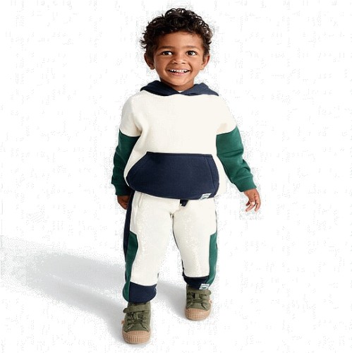 F&F Boys 2-Piece Cotton Rich Colour Block Hoodie and Joggers Set in Cream
