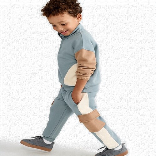 F&F Boys 2-Piece Cotton Rich Colour Block Half Zip Sweatshirt and Joggers Set in Blue