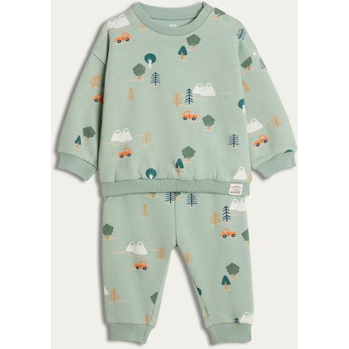 2-Piece Cotton Rich Adventure Print Sweatshirt and Joggers Set in Green