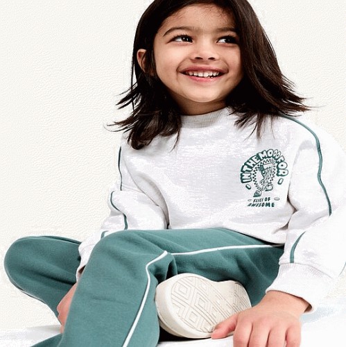 F&F Boys 2-Piece Cotton Rich Contrast Stitch Sweatshirt and Joggers Set in Green