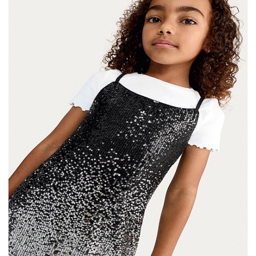 F&F Girls Sequin Dress and Cotton Rich T-Shirt Set in Silver