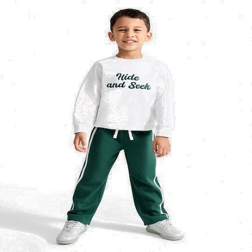 F&F Boys 2-Piece Cotton Rich Slogan Sweatshirt and Joggers Set in Green