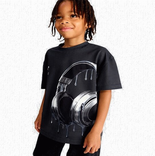 F&F Boys Pure Cotton Dripping Headphones Oversized T-Shirt in Grey