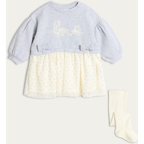 2-Piece Cotton Rich Twofer Dress and Tights Set in Grey
