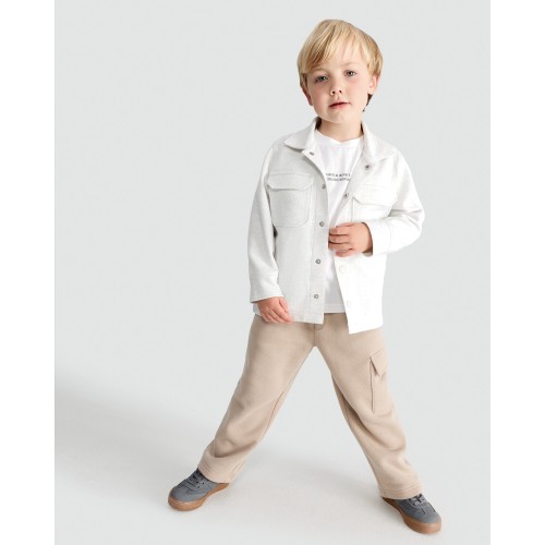 F&F Boys 2-Piece Cotton Rich T-Shirt and Shacket Set in Grey