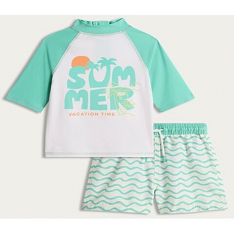 F&F Boys 2-Piece Summer Vacation Time Rash Vest and Swim Shorts Set in Green