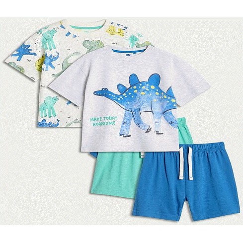 Boys 2-Pack Cotton Rich Dinosaur Print Pyjama Sets in Cream