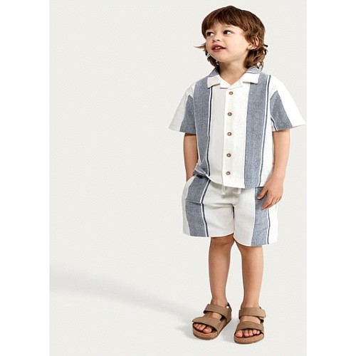 F&F Boys 2-Piece Pure Cotton Textured Striped Shirt and Shorts Set in Cream