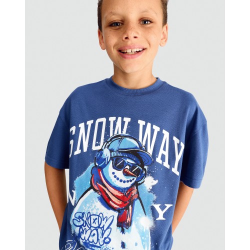 F&F Boys Pure Cotton Christmas Printed T-Shirt in Blue
