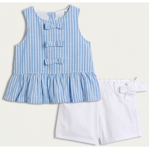 2-Piece Pure Cotton Striped Vest and Shorts Set in Blue