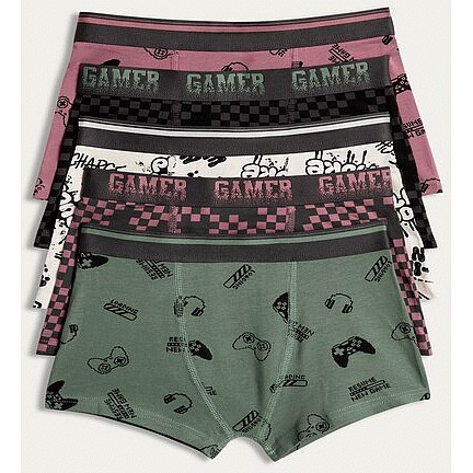 Boys 5-Pack Cotton Rich Gamer Print Trunks in Green Multi