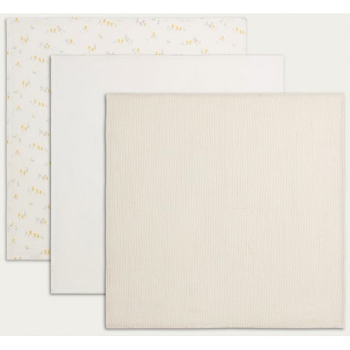 3-Pack Pure Cotton Printed Muslin Squares in White