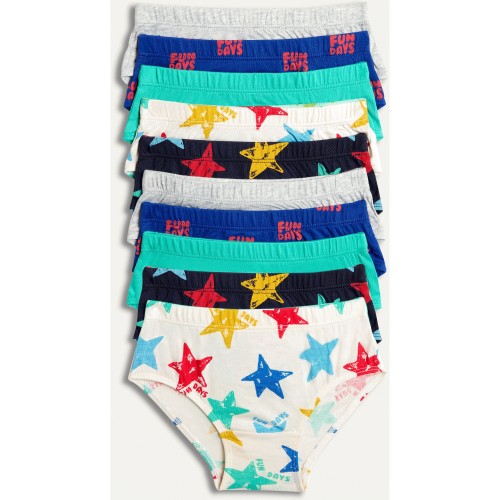 Boys 10-Pack Pure Cotton Star Printed Briefs in Multi