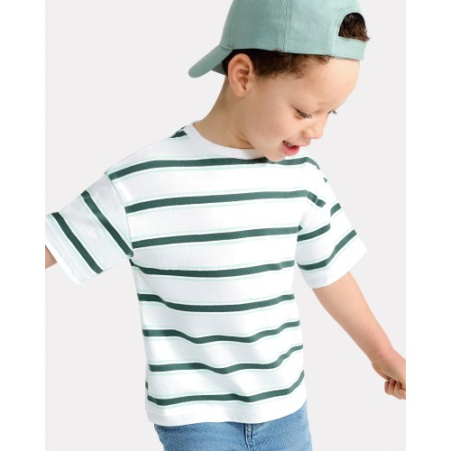Pure Cotton Stripe Print Short Sleeved T-Shirt in Stone