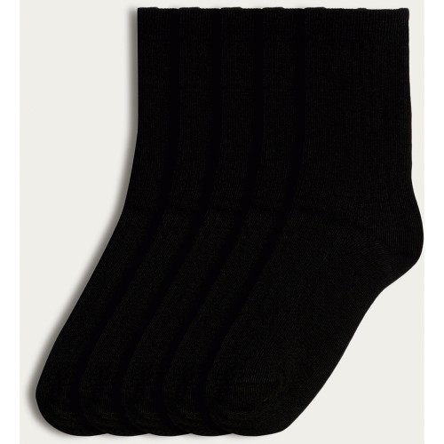 Boys 5-Pack Cotton Rich Ribbed Ankle Socks in Black