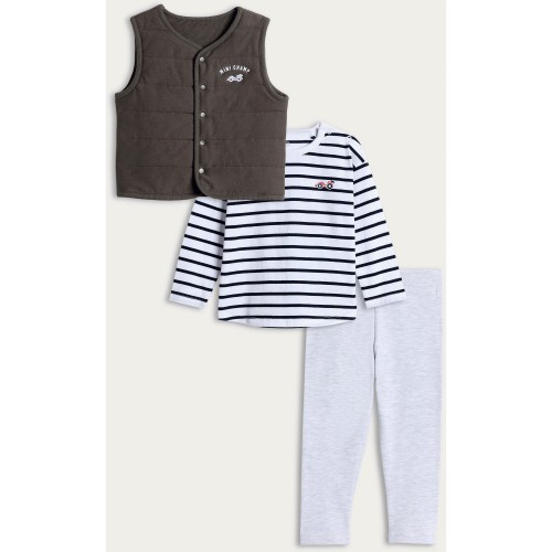 3-Piece Cotton Rich Mini Champ Gilet Top and Leggings Set in Grey
