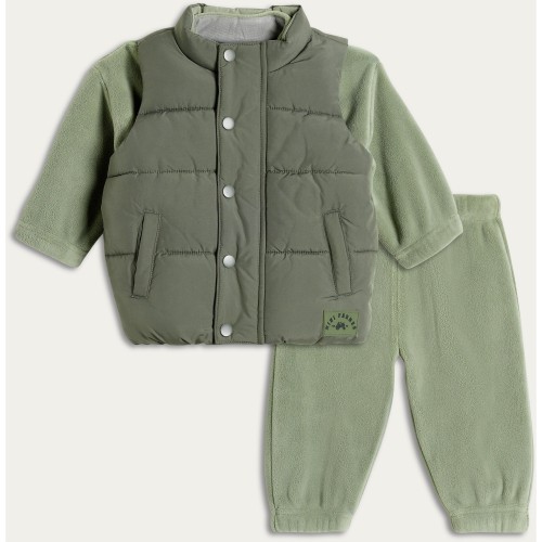 3-Piece Padded Gilet Fleece Sweatshirt and Joggers Set in Green