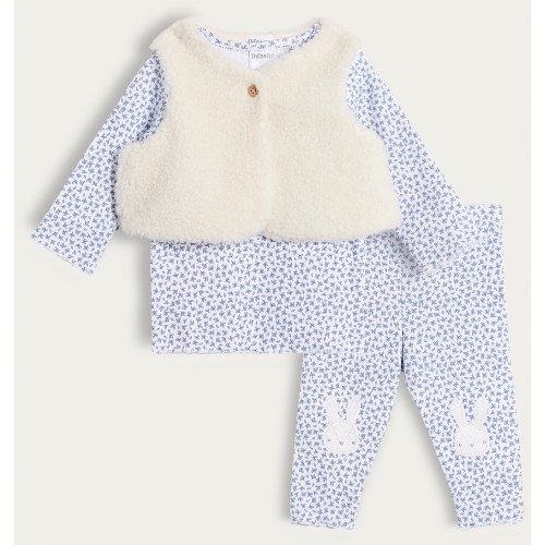3-Piece Cotton Rich Top Legging and Gilet Set in Blue