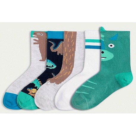 Boys 5-Pack Dinosaur Print Ankle Socks in Multi