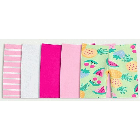 F&F Girls 5-Pack Cotton Rich Fruit Print Cycling Shorts in Multi Pink