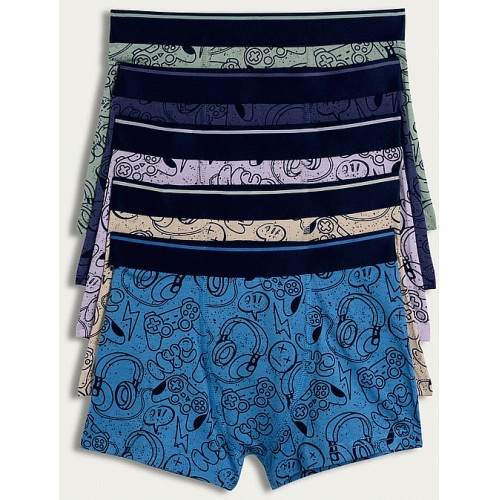 Boys 5-Pack Cotton Rich Gaming Print Trunks in Multi
