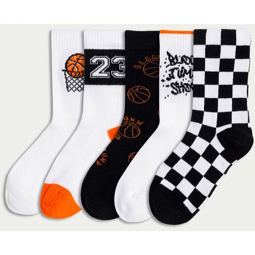 Boys 5-Pack Basketball Print Ankle Socks in Multi