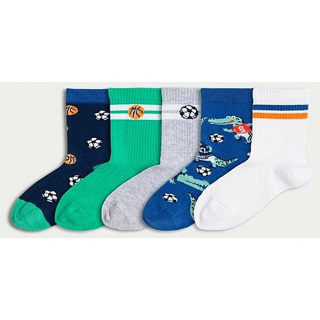 Boys 5-Pack Cotton Blend Sporty Print Ankle Socks in Multi
